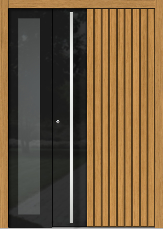 Unsere Holz-Haustüren Kollektion VETRO mit flächenbündigem Glasdesign ist für alle, die sich für ihre Haustür ein einmaliges, künstlerisches Design wünschen. Die schwarze Design- Verglasung verleiht jedem Modell ein fast dreidimensionales Erscheinungsbild. Mit Glas kann man ganz besondere Effekte im Raum erzielen. Es ist das Material von heute, das beim Bau von modernen Häusern zum Einsatz kommt.